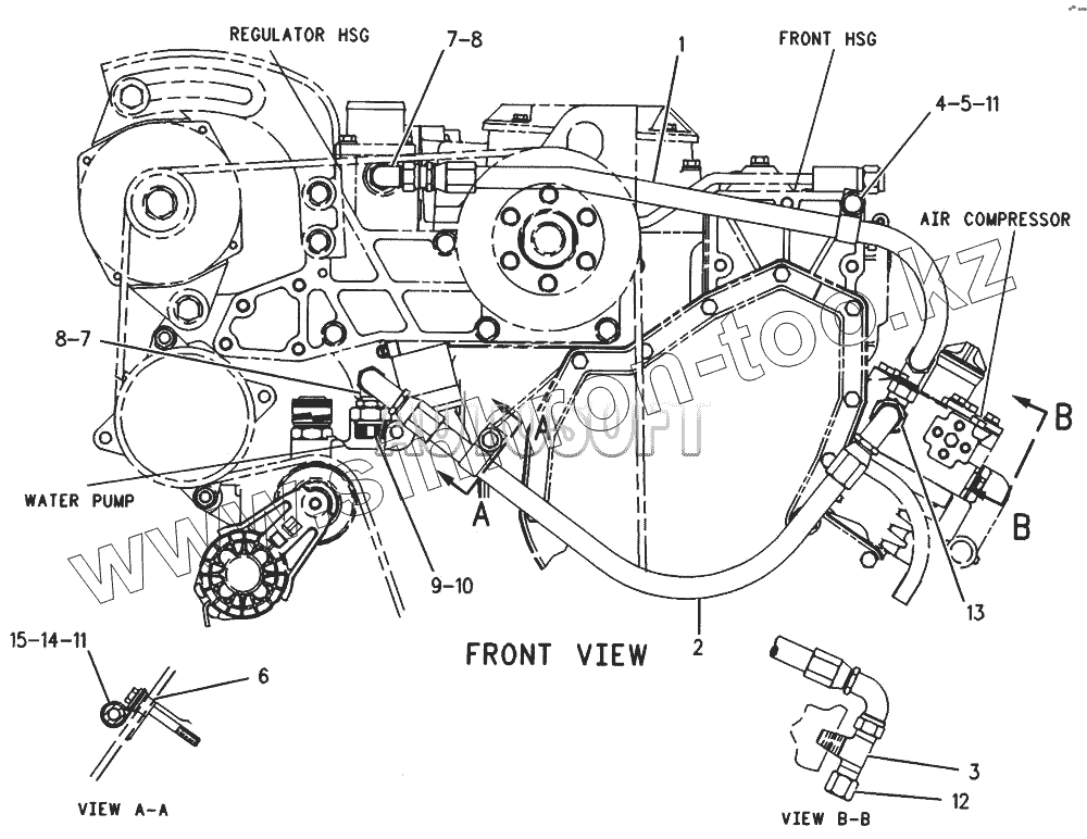 Каталог запасных частей к технике: Caterpillar-3116. 6I-4443 Трубопроводы воздушного компрессора