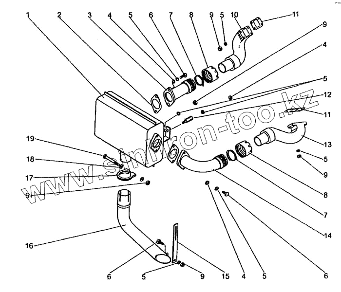 Каталог запасных частей к технике: ЧТЗ В-2Ч 8,2/7,8. УСТАНОВКА СИСТЕМЫ ВЫПУСКА