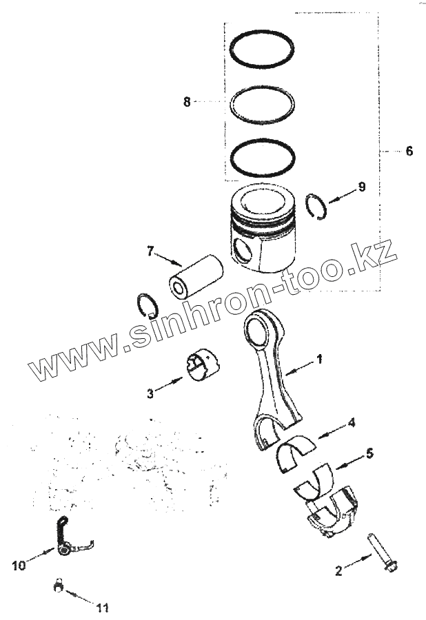 Каталог запасных частей к технике: Cummins 4ISBe-185. Установка шатуна и поршня