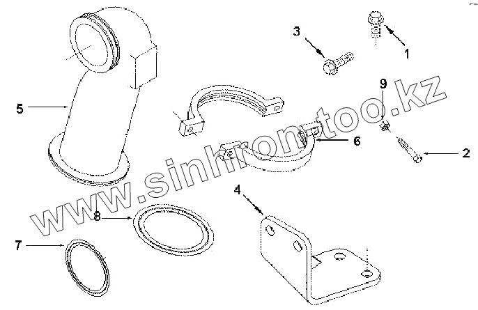 Каталог запасных частей к технике: Cummins 6BTA5.9-C180. XS 9469ZZ CONNECTION, EXHAUST OUTLET