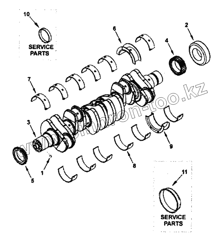 Каталог запасных частей к технике: Cummins 6ISBe4-245 (Камский Автозавод-4308). Коленчатый вал и подшипники