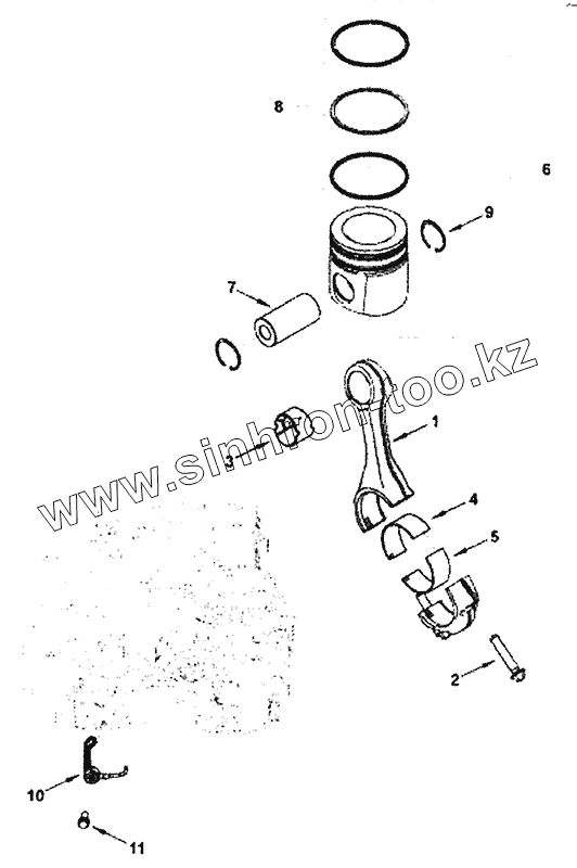 Каталог запасных частей к технике: Cummins 6ISBe-210. Установка шатуна и поршня