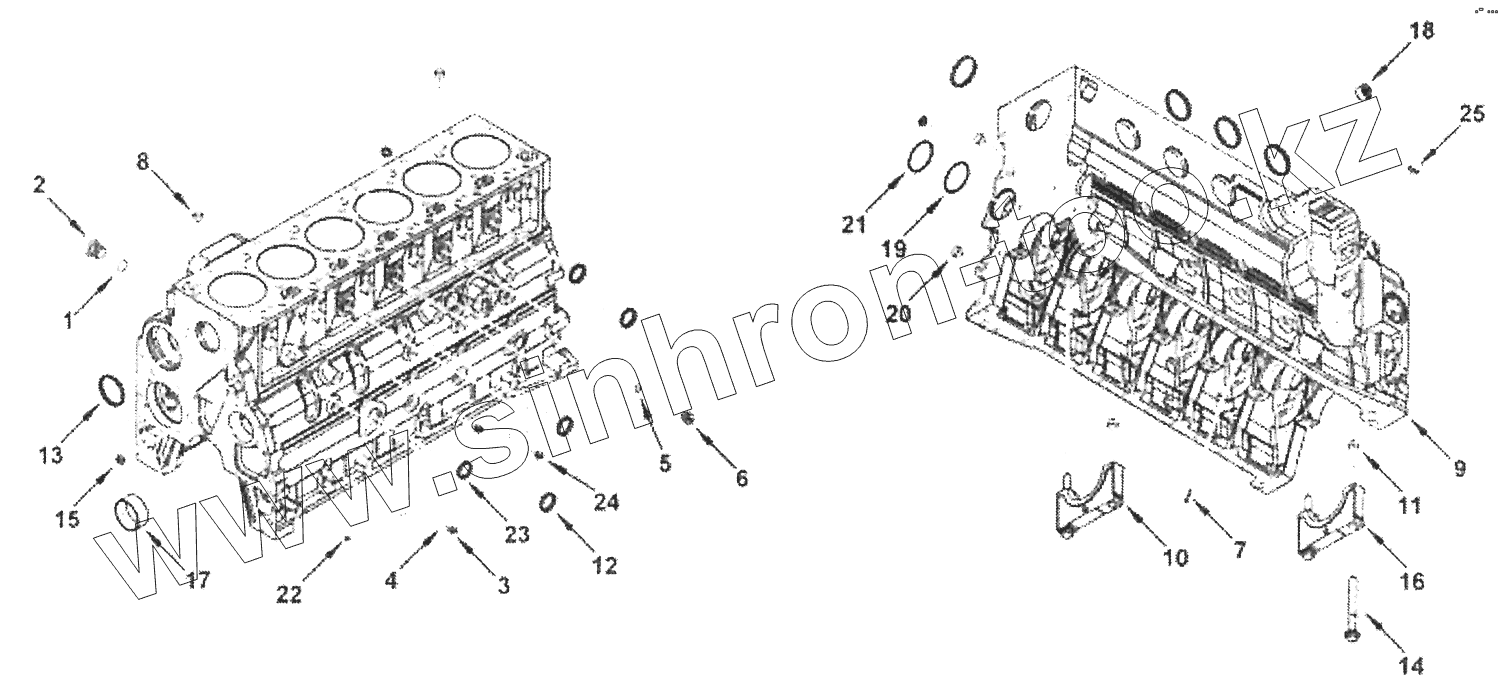 Каталог запасных частей к технике: Cummins 6ISBe-270B. Блок цилиндров