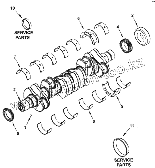 Каталог запасных частей к технике: Cummins 6ISBe-270B. Коленчатый вал и подшипники