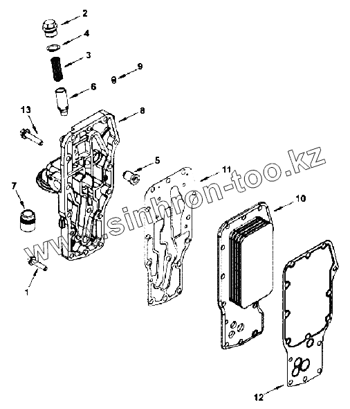 Каталог запасных частей к технике: Cummins 6ISBe-285. Маслоохладитель моторного масла