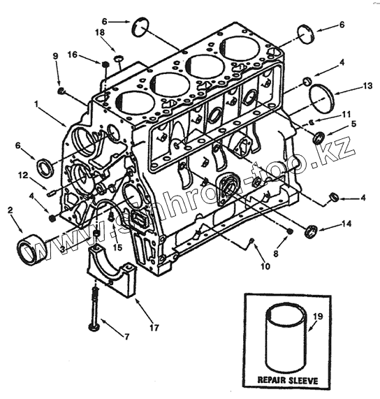 Каталог запасных частей к технике: Cummins-4BT3.9. CYLINDER BLOCK