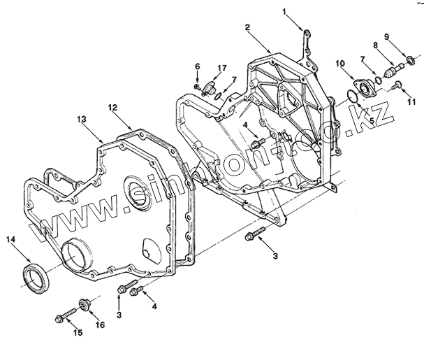 Каталог запасных частей к технике: Cummins-4BT3.9. FRONT GEAR COVER BP9727