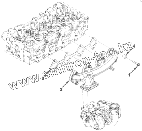 Каталог запасных частей к технике: Cummins ISF 2.8 (S3129T). Выпускной коллектор. Место установки турбонагнетателя