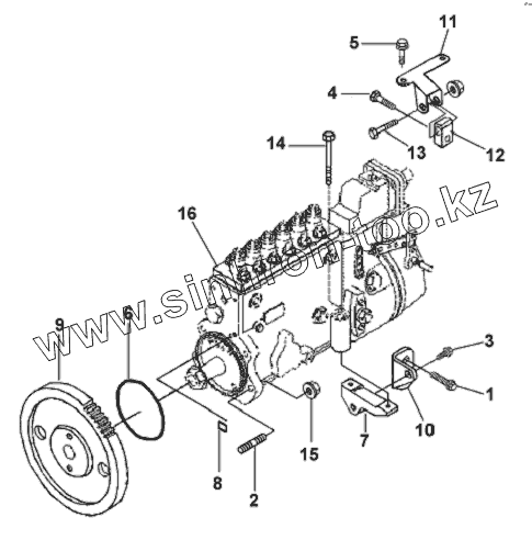Каталог запасных частей к технике: Cummins L340-20. Топливный насос высокого давления и его крепление