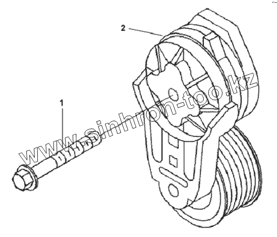 Каталог запасных частей к технике: Cummins L340-20. Установка натяжителя ремня