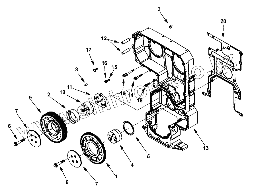 Каталог запасных частей к технике: Cummins QSX-15 I. BB1836 Gear Housing/Idler Gears