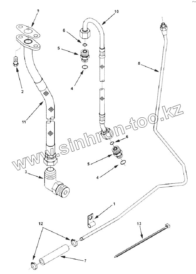Каталог запасных частей к технике: Cummins Серия ISMe. ТР2819-05 Turbocharger Plumbing