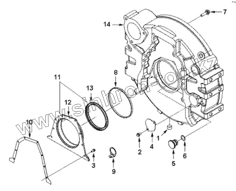 Каталог запасных частей к технике: DCEC 4B3.9-G1. FH 9634ZZ Flywheel housing set