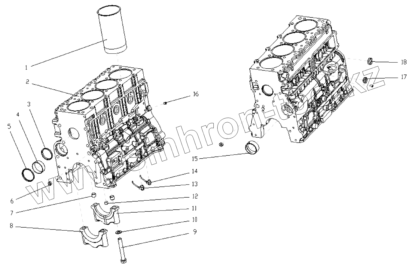 Каталог запасных частей к технике: DongFeng CY4102-C3C. Соединительная часть блока-картера