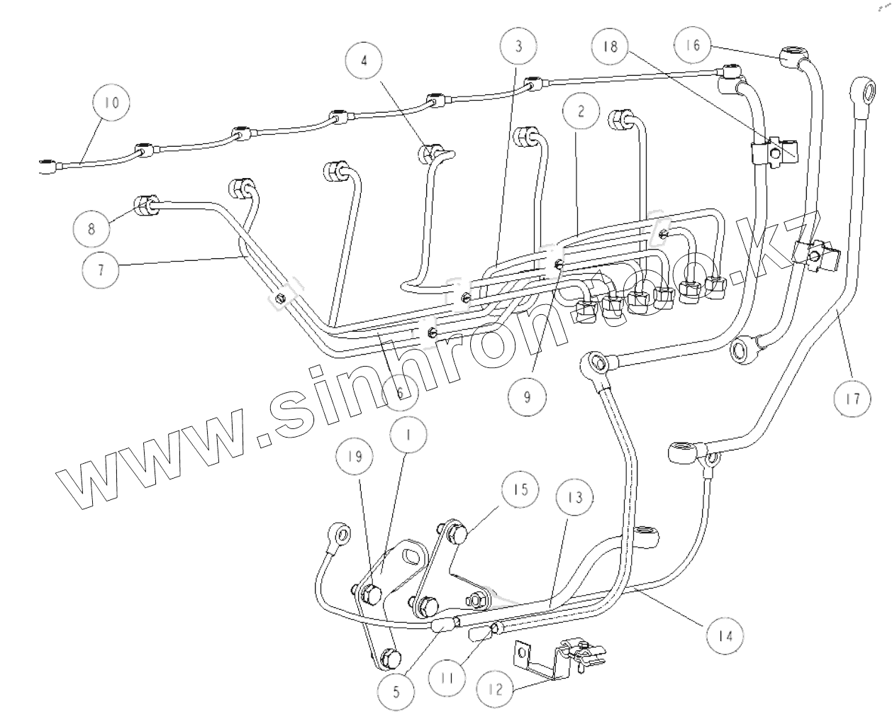Каталог запасных частей к технике: DongFeng CY6102BG4-2. Fuel Pipes Assembly