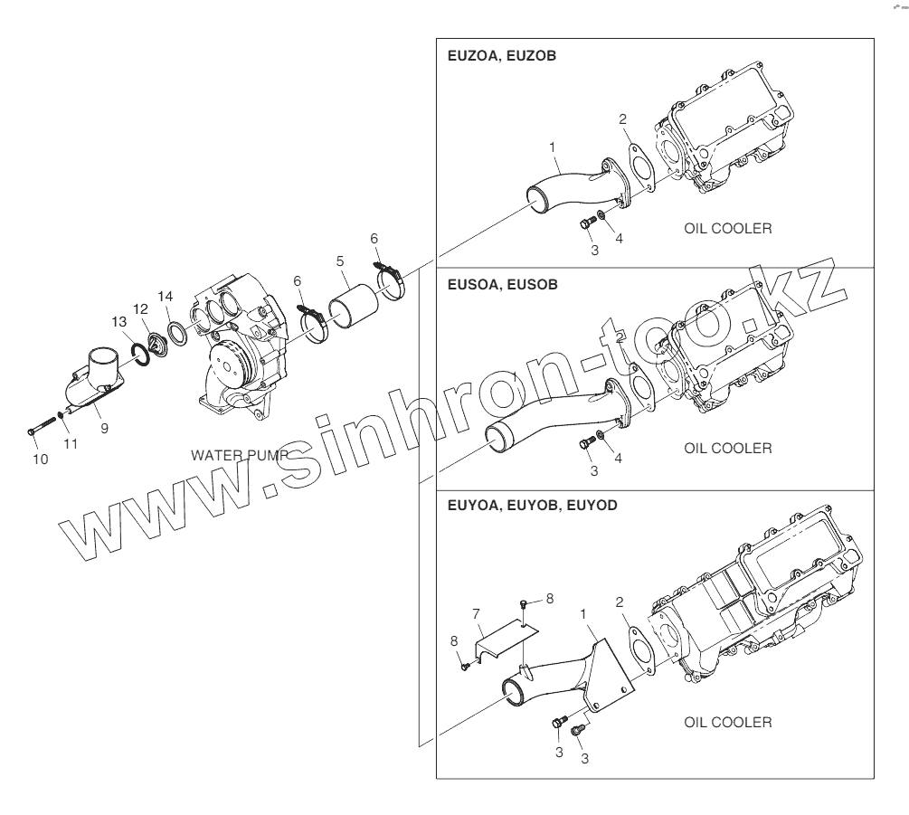 Каталог запасных частей к технике: Doosan P158FE. Cooling Water Pipe