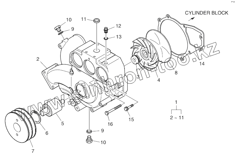 Каталог запасных частей к технике: Doosan P158FE. Water Pump