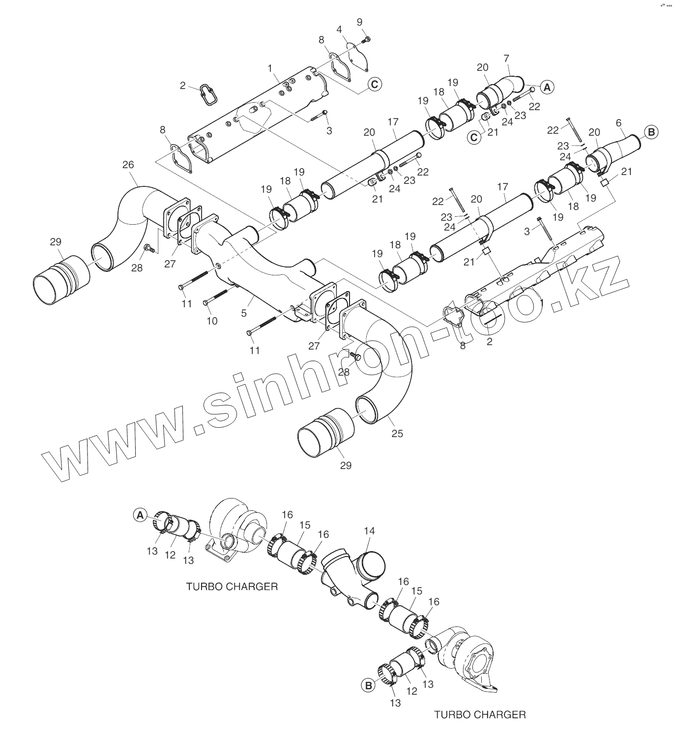 Каталог запасных частей к технике: Doosan P180LE. Intake Manifold