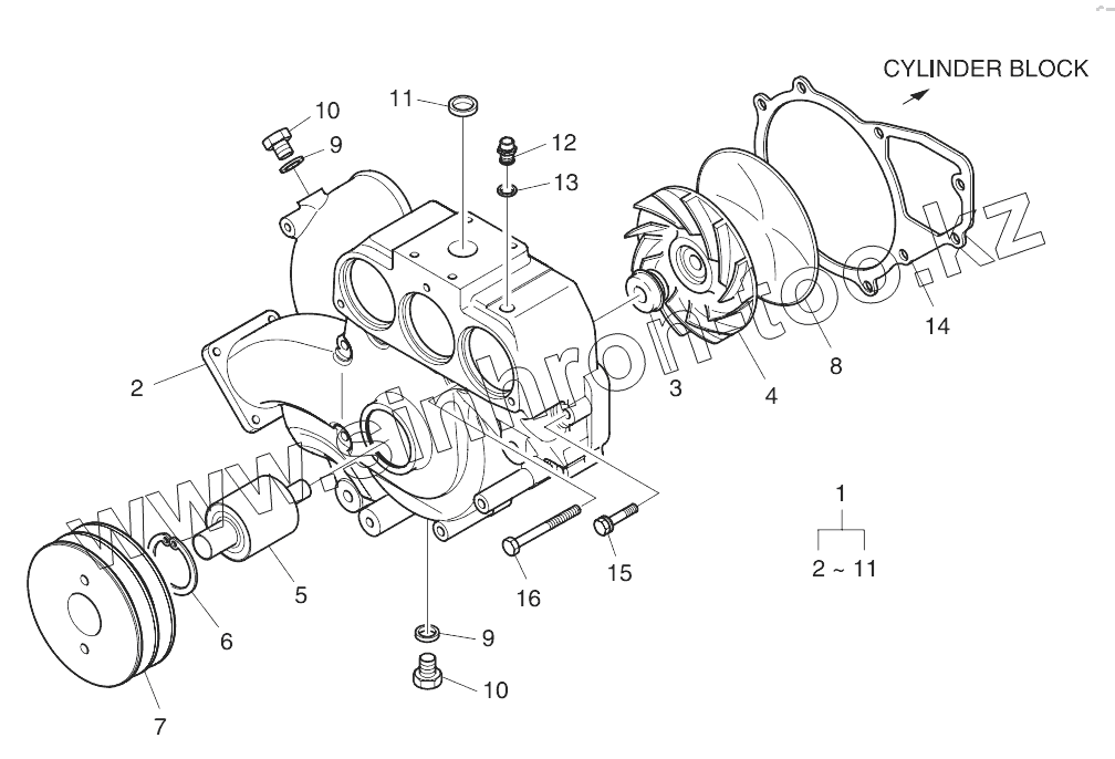 Каталог запасных частей к технике: Doosan P180LE. Water Pump