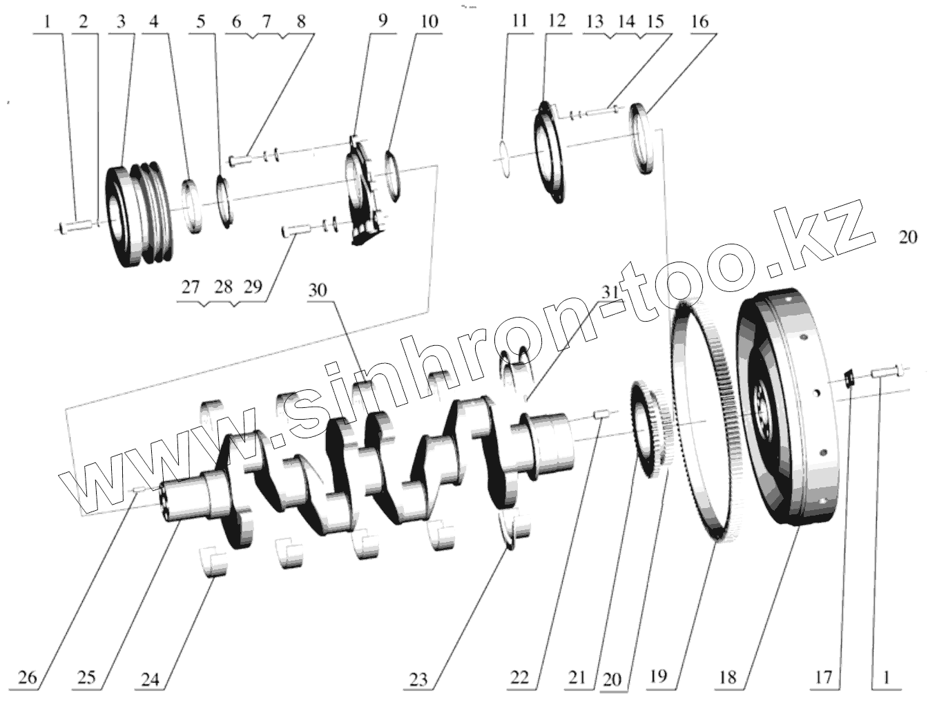 Каталог запасных частей к технике: FAW CA4DF2. Crankshaft and Flywheel
