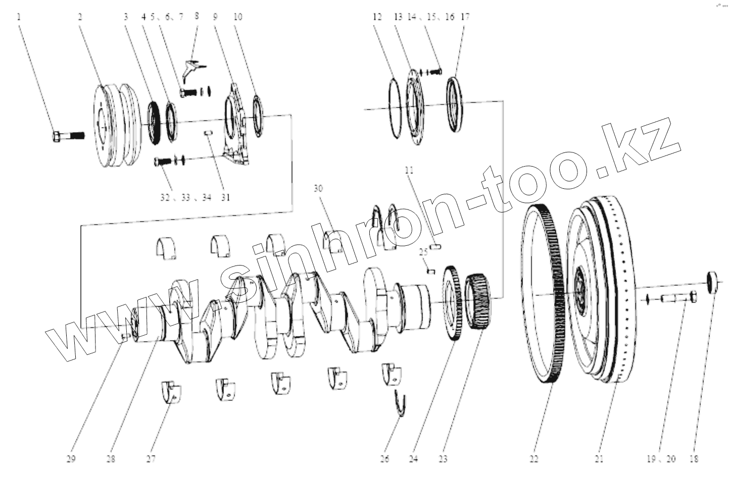 Каталог запасных частей к технике: FAW CA4DF3-13E3. Коленвал и маховик