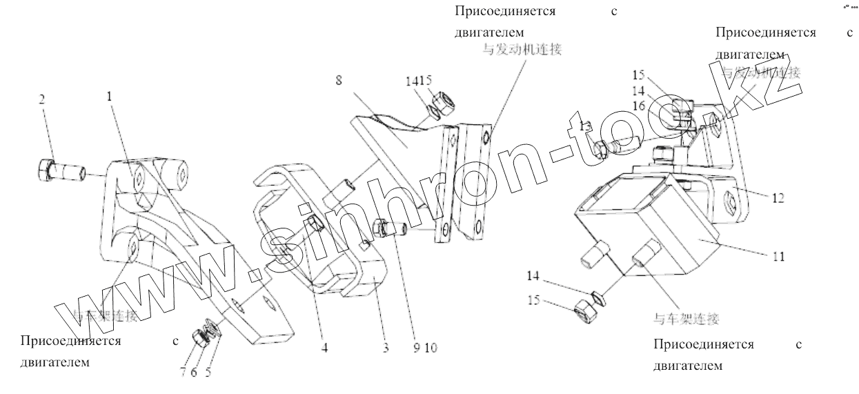 Каталог запасных частей к технике: FAW CA4DF3-13E3. Подвеска двигателя