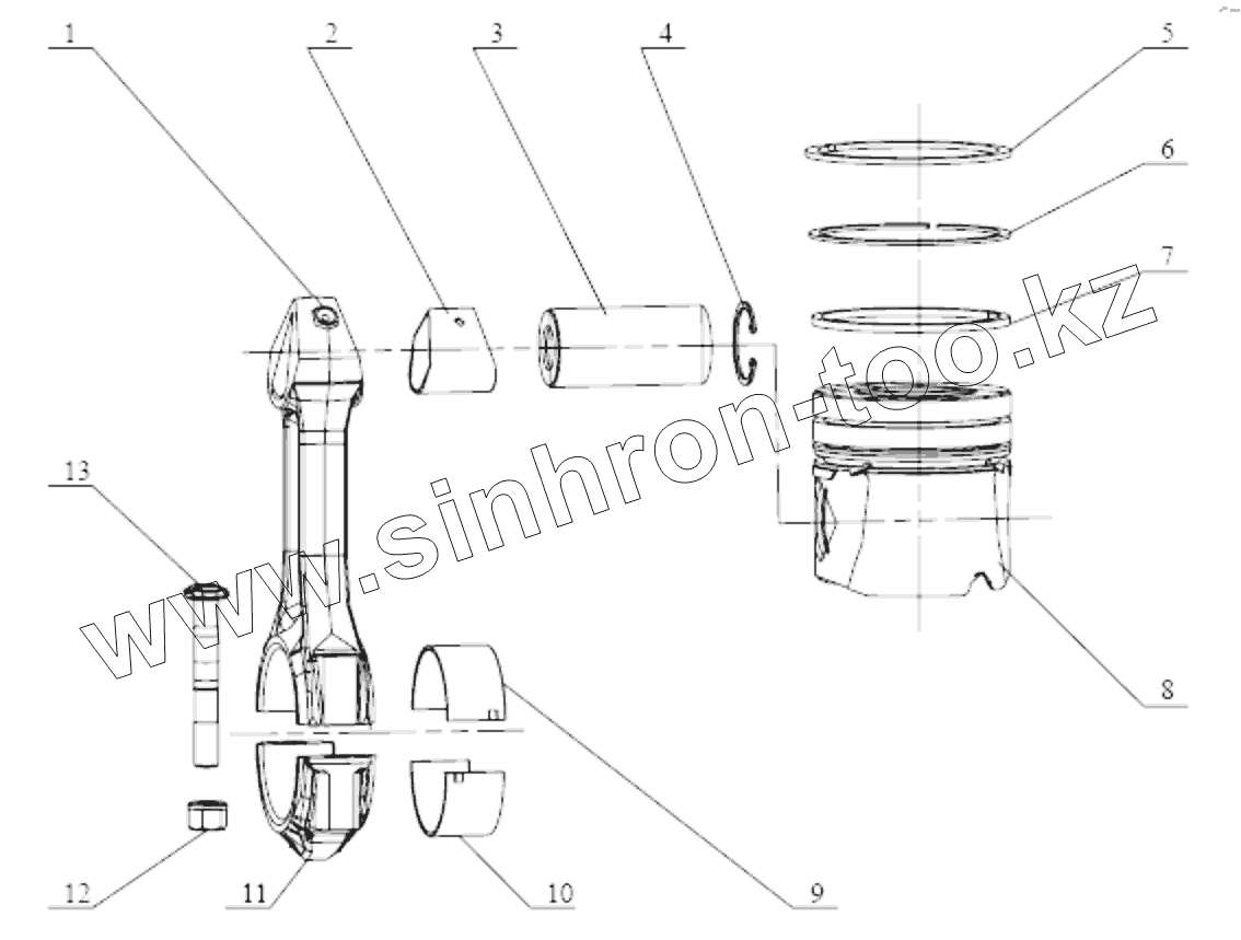 Каталог запасных частей к технике: FAW CA4DF3-13E3. Поршень и шатун