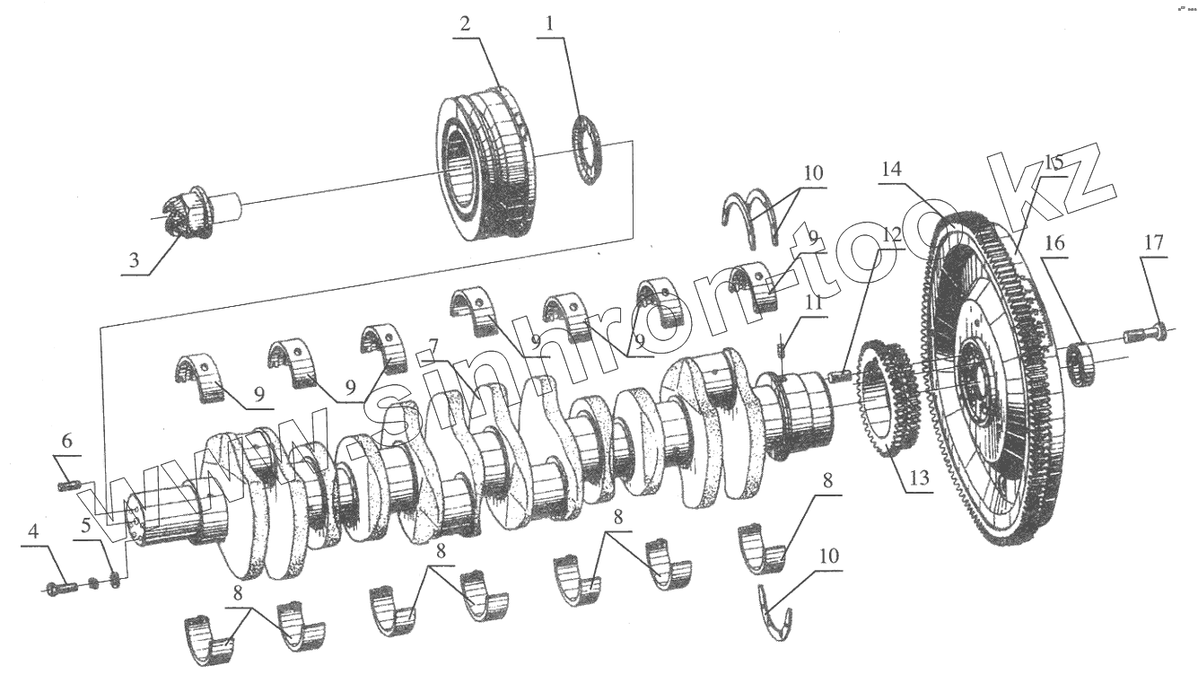 Каталог запасных частей к технике: FAW CA6110. Crankshaft and flywheel