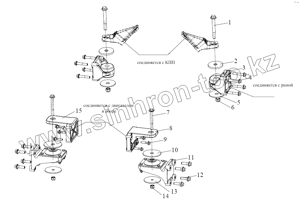 Каталог запасных частей к технике: FAW CA6DL2-37E4. Подвеска двигателя