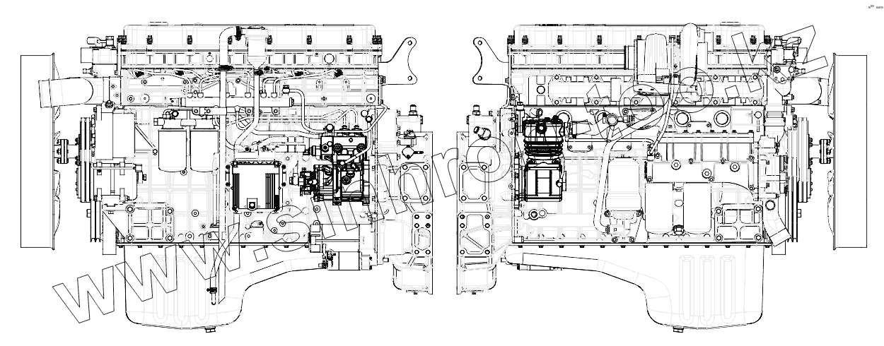 Каталог запасных частей к технике: FAW CA6DL2-37E5. Двигатель (вид слева и справа)