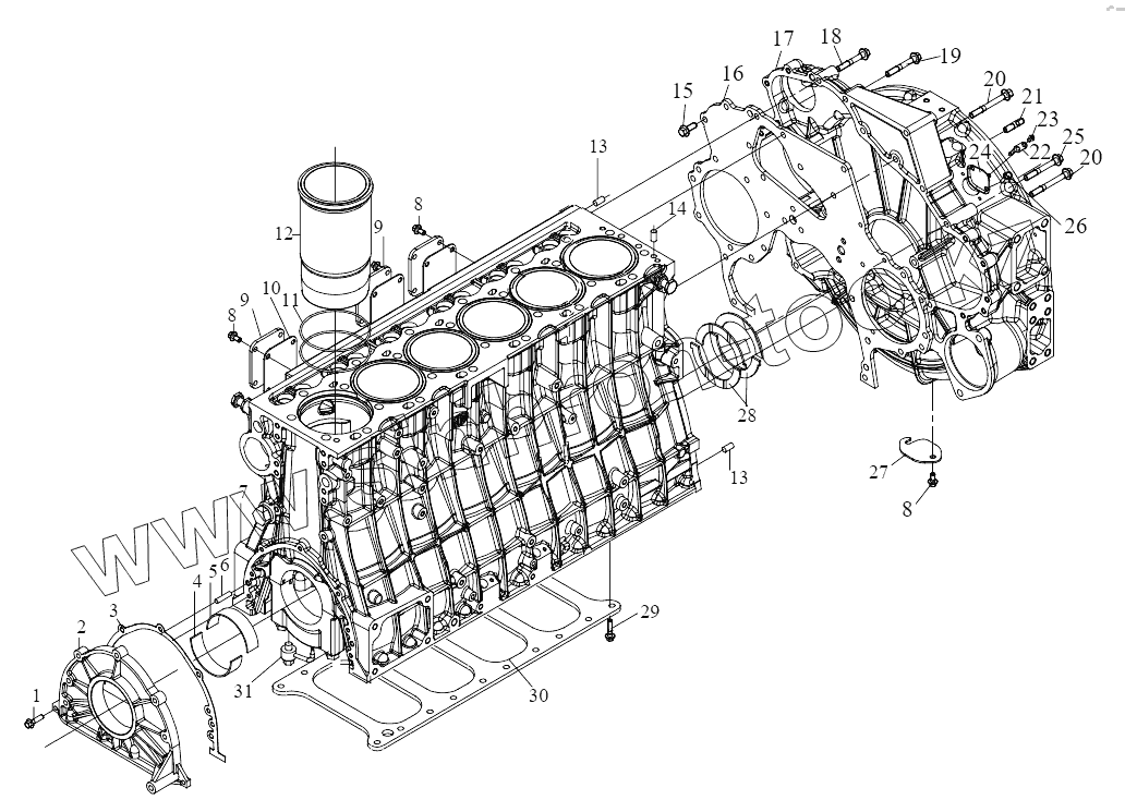 Каталог запасных частей к технике: FAW CA6DL2-37E5. Компоненты блока цилиндров
