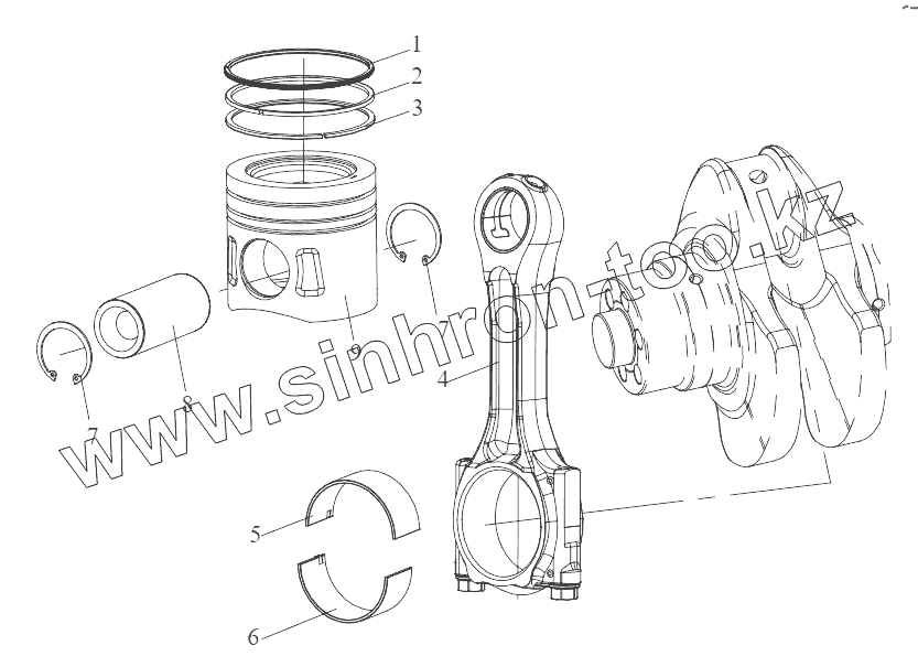 Каталог запасных частей к технике: FAW CA6DL2-37E5. Поршень и шатун
