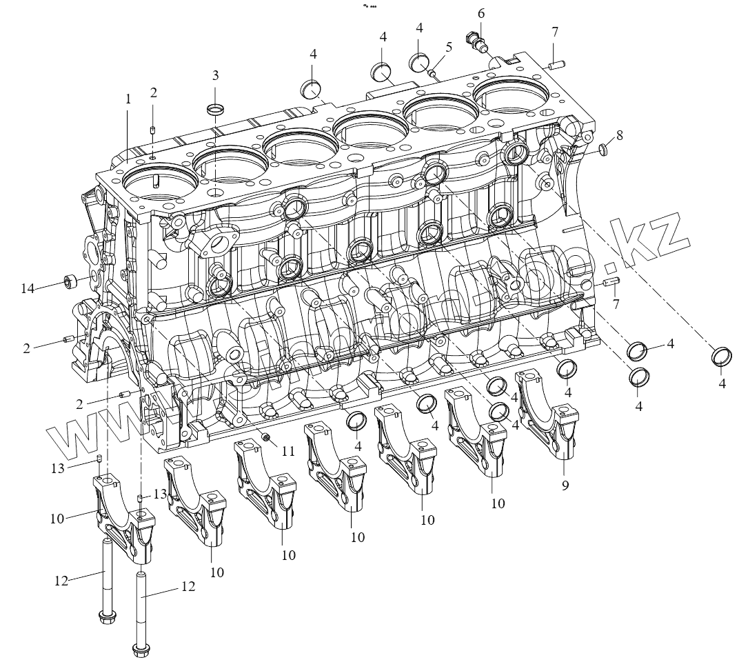 Каталог запасных частей к технике: FAW CA6DM2. Блок цилиндров