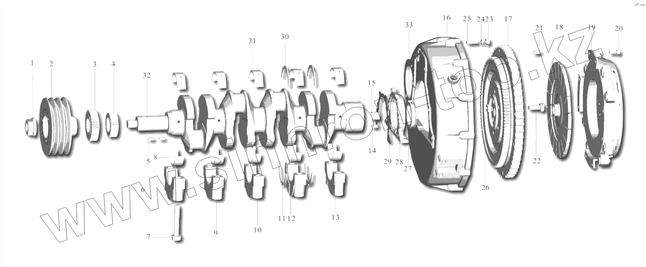Каталог запасных частей к технике: FAW CA 4DC2-10E4. Crankshaft & flywheel