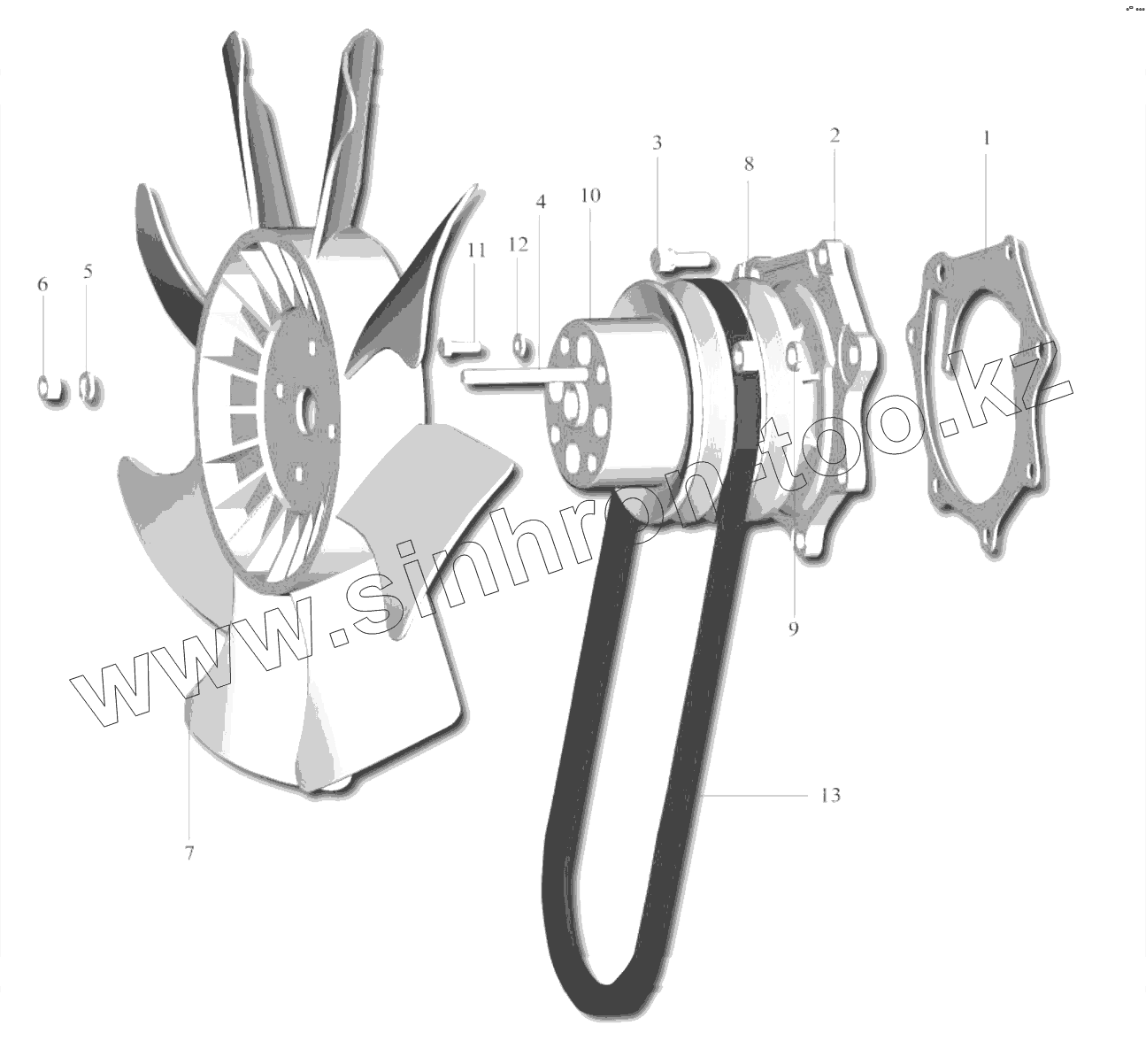 Каталог запасных частей к технике: FAW CA 4DC2-10E4. Water pump & fan