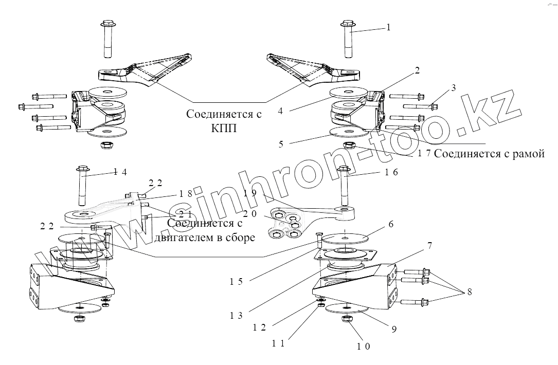 Каталог запасных частей к технике: FAW CA 6DM2. Подвеска двигателя