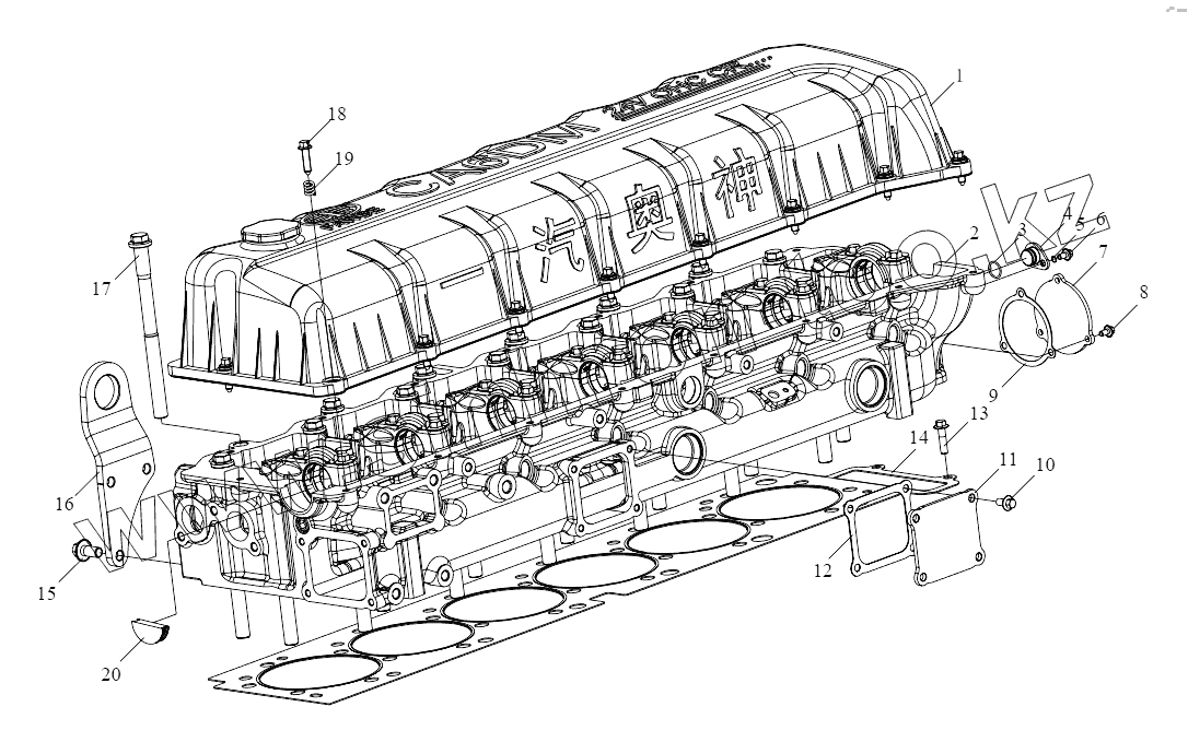 Каталог запасных частей к технике: FAW CA 6DM2. Составляющие элементы головки блока цилиндров