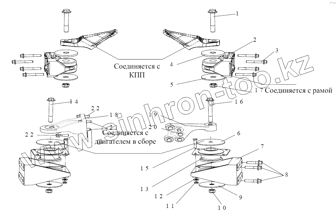 Каталог запасных частей к технике: FAW CA 6DM2-39E4. Подвеска двигателя