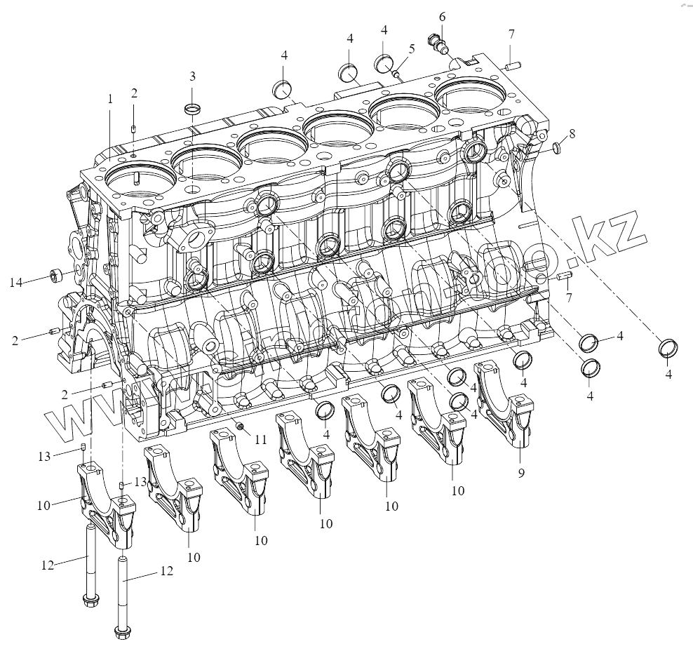 Каталог запасных частей к технике: FAW CA 6DM2-42E51. Блок цилиндров