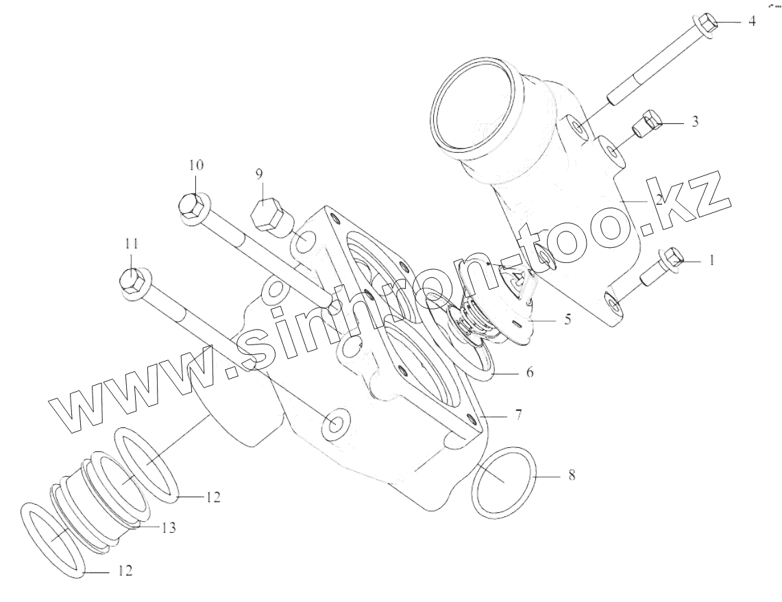 Каталог запасных частей к технике: FAW CA 6DM2-42E51. Термостат, крышка термостата, патрубок малого круга