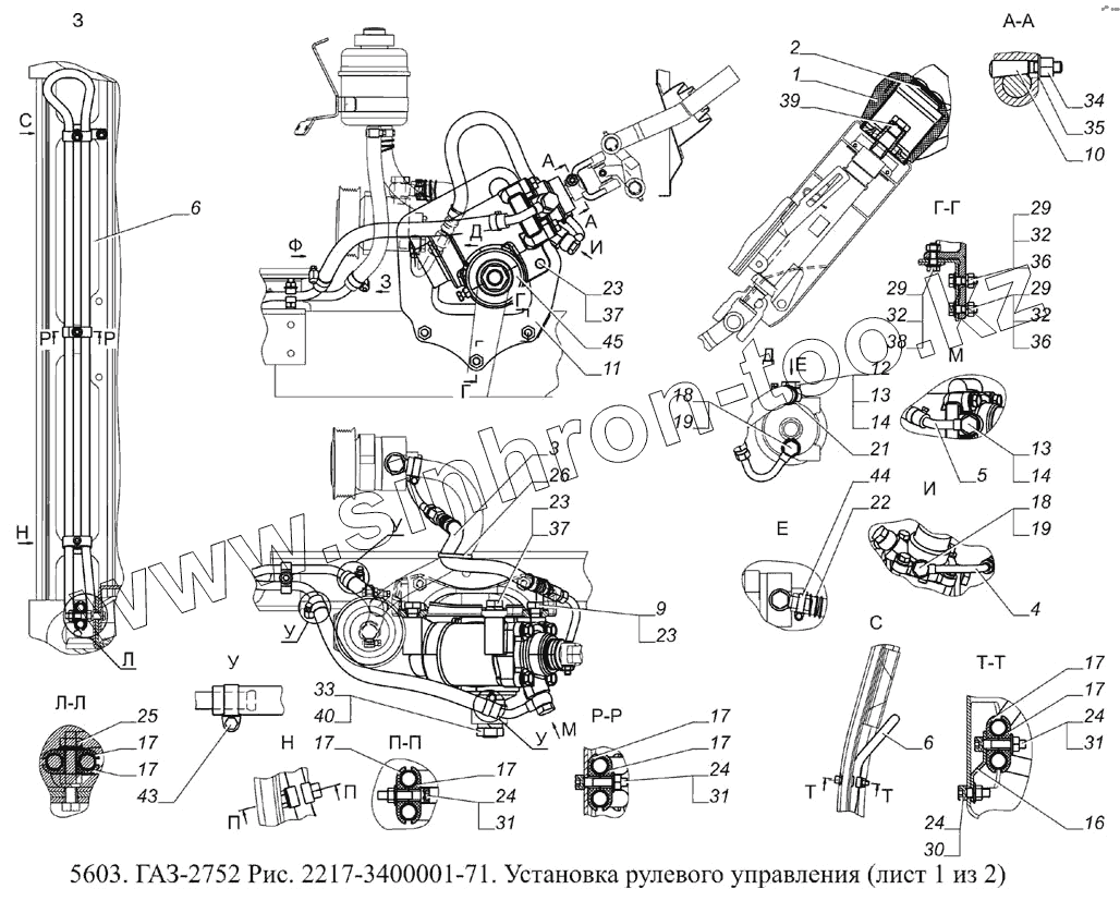 Каталог запасных частей к технике: ГАЗ-5603 (Евро 4). 2217-3400001-71 Установка рулевого управления