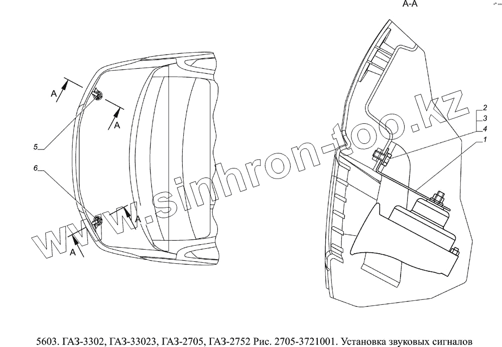 Каталог запасных частей к технике: ГАЗ-5603 (Евро 4). 2705-3721001 Установка звуковых сигналов