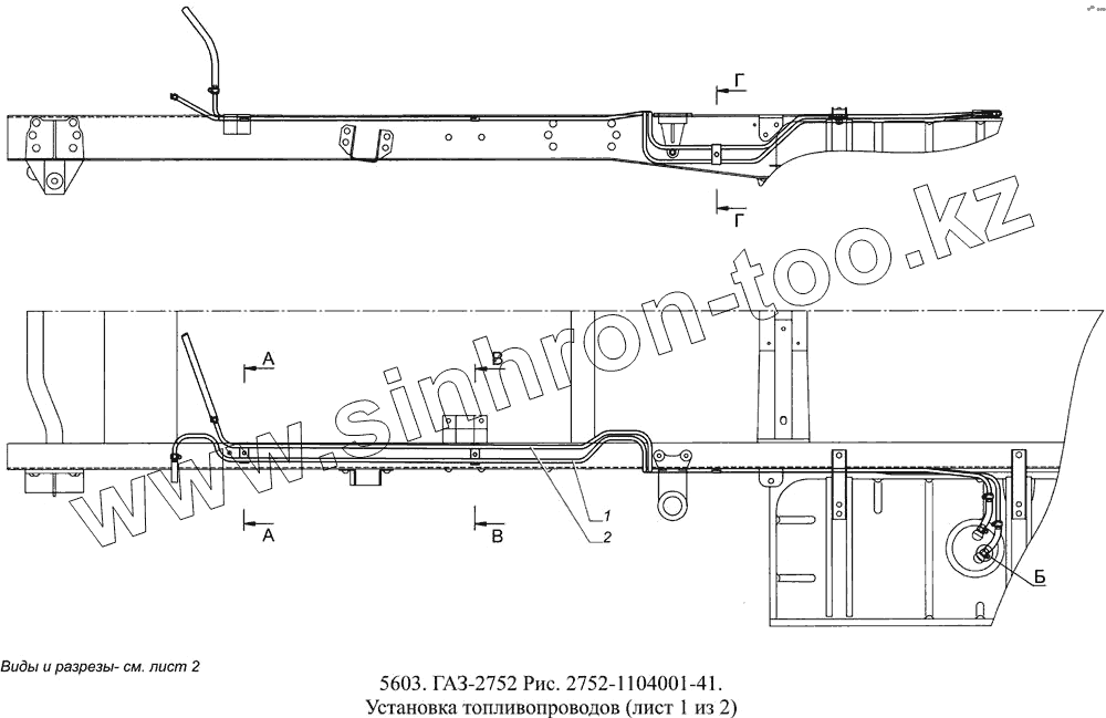 Каталог запасных частей к технике: ГАЗ-5603 (Евро 4). 2752-1104001-41 Установка топливопроводов