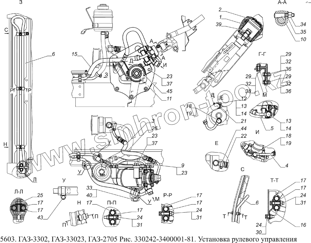 Каталог запасных частей к технике: ГАЗ-5603 (Евро 4). 330242-3400001-81 Установка рулевого управления