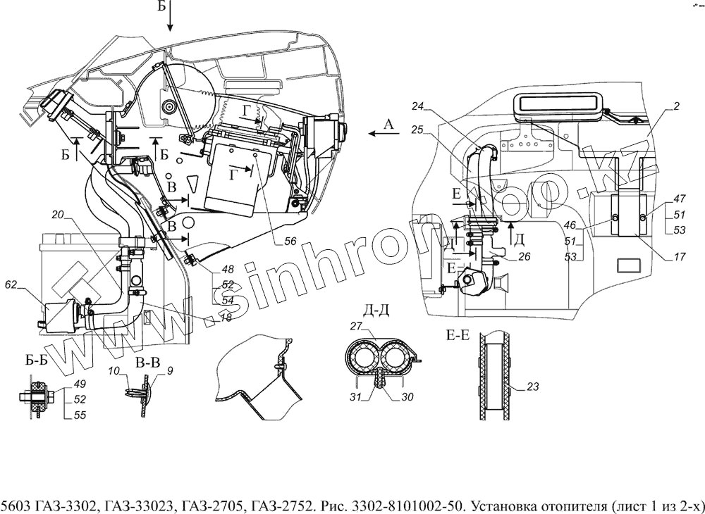 Каталог запасных частей к технике: ГАЗ-5603 (Евро 4). 3302-8101002-50 Установка отопителя