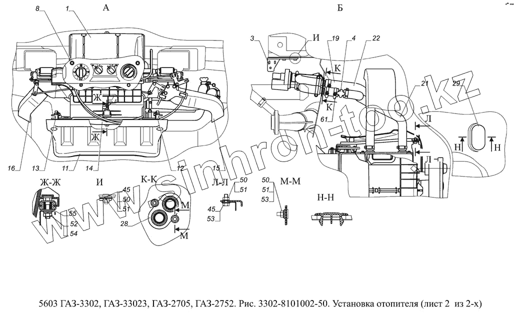 Каталог запасных частей к технике: ГАЗ-5603 (Евро 4). 3302-8101002-50 Установка отопителя