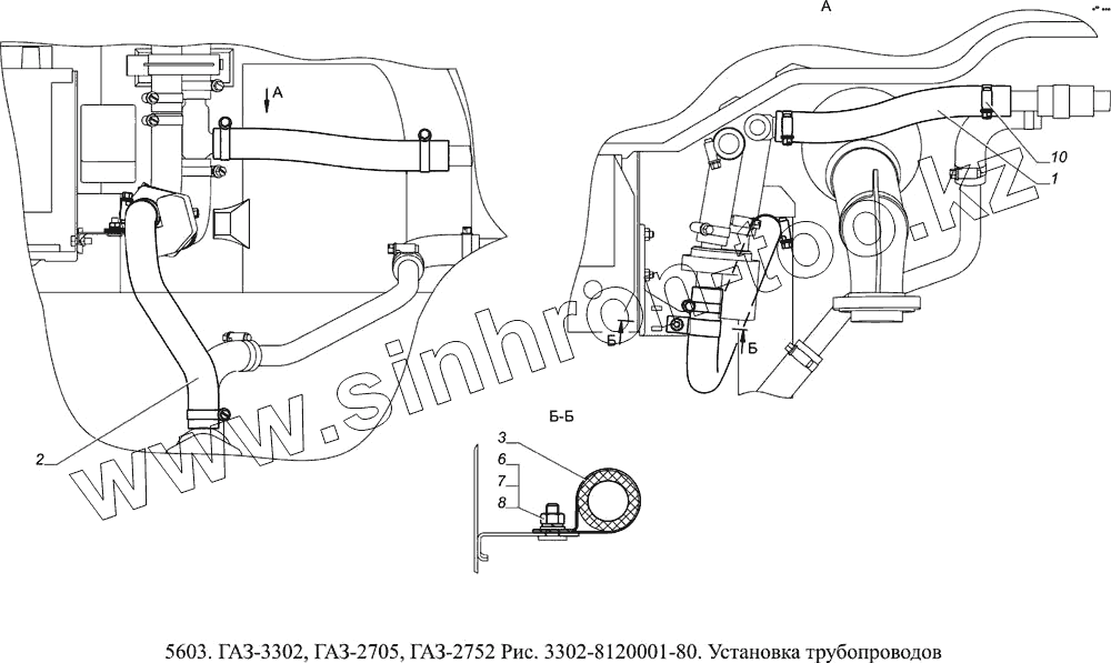 Каталог запасных частей к технике: ГАЗ-5603 (Евро 4). 3302-8120001-80 Установка трубопроводов
