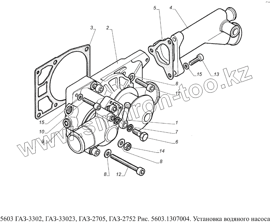 Каталог запасных частей к технике: ГАЗ-5603 (Евро 4). 5603.1307004 Установка водяного насоса