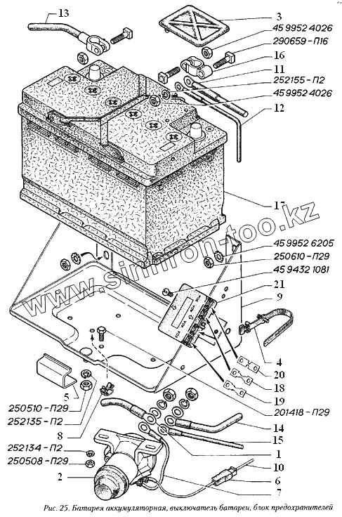 Каталог запасных частей к технике: ГАЗ-560. Батарея аккумуляторная, включатель батареи, блок предохранителей