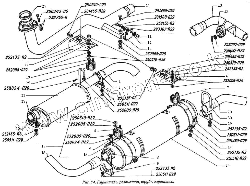 Каталог запасных частей к технике: ГАЗ-560. Глушитель, резонатор, трубы глушителя